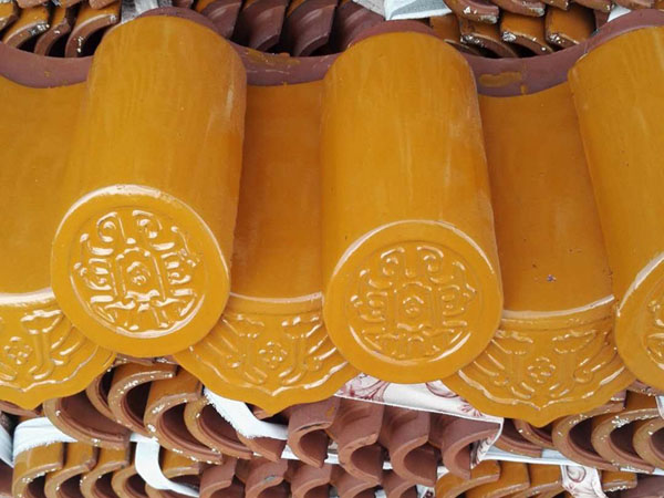 橙黃釉色的仿古筒瓦適用于寺廟、寺院的房面裝飾,也用于唐式、明清、京派古建的房面裝飾等琉璃瓦顏色不同,是因為釉彩中含有不同的金屬氧化物。氧化鐵釉料將燒成黃色的琉璃瓦,氧化銅釉料將燒成綠色的琉璃瓦,氧化鈷釉料將燒成藍色的琉璃瓦等等。